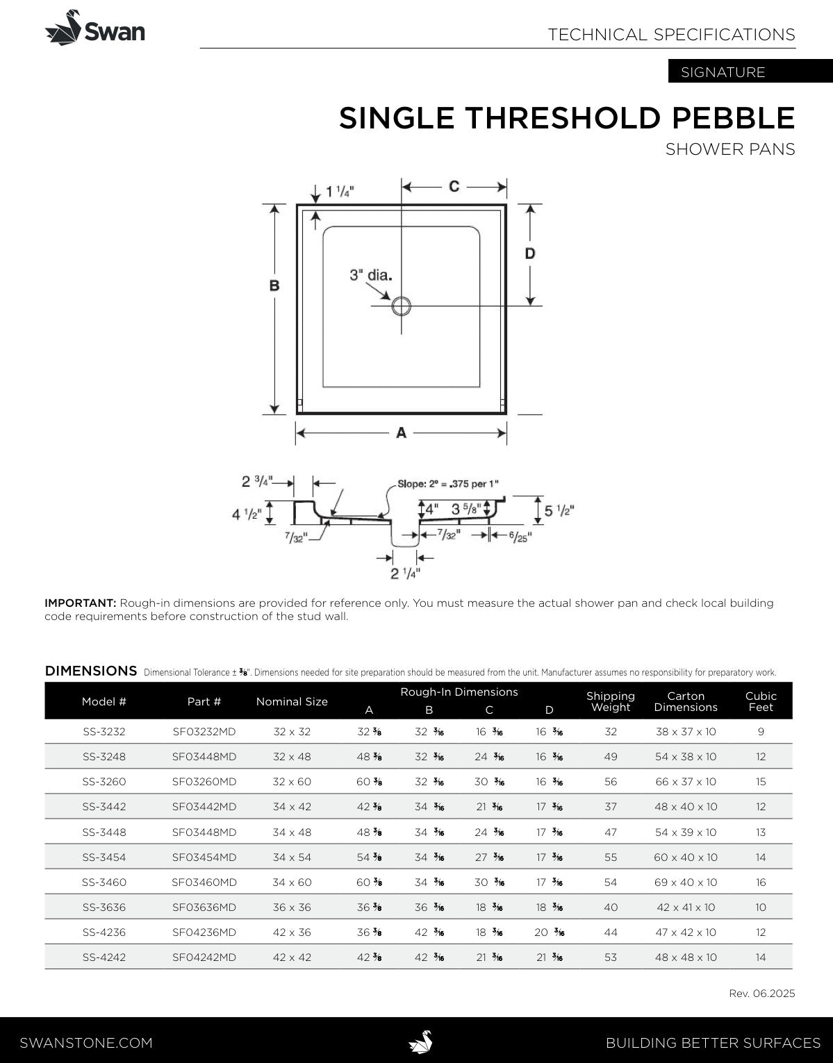 34X60 Swanstone Shower Base