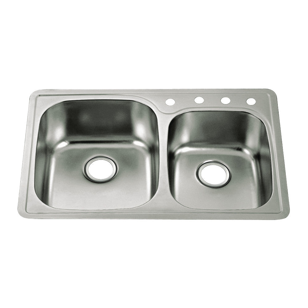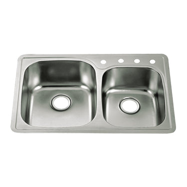 Seamlessly interweaving elements from both modern and classic design, The Studio collection features various kitchen and bath fixtures that embody the finest design elements for a transitional style, fitting any home decor. Easy to install or replace, drop-in sinks have a self-rimming nature. The Studio Self-Rimming Double Bowl Kitchen Sink in particular, is constructed from high quality 304 grade rust-resistant stainless steel. The brushed finish is also resistant to scratches, and with the sink's sound dampening technology, sound and vibrations are reduced. Perfect for organizing, separate fruits and vegetables that need washing from dirty dishes, or allow dishes to dry on one half and be washed on the other with the provided double bowl. Drop-In kitchen sinks will quickly and easily become a part of your home, completing your transitional kitchen ensemble.