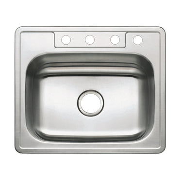 Seamlessly interweaving elements from both modern and classic design, The Studio collection features various kitchen and bath fixtures that embody the finest design elements for a transitional style, fitting any home decor. Easy to install or replace, drop-in sinks have a self-rimming nature. The Studio Self-Rimming Single Bowl Kitchen Sink in particular, is constructed from high quality 304 grade rust-resistant stainless steel. The brushed finish is also resistant to scratches, and with the sink's sound dampening technology, sound and vibrations are reduced. The provided single bowl also lends ease in washing larger dishes. For a generous washing area, the Studio sink has overall dimensions of 25 inch (L) x 22 inch (W) x 7 inch (H). Drop-In kitchen sinks will quickly and easily become a part of your home, completing your transitional kitchen ensemble.