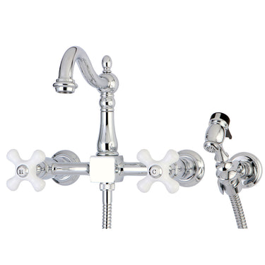 Kingston Brass KS1261PXBS Heritage Wall Mount Bridge Kitchen Faucet with Brass Sprayer