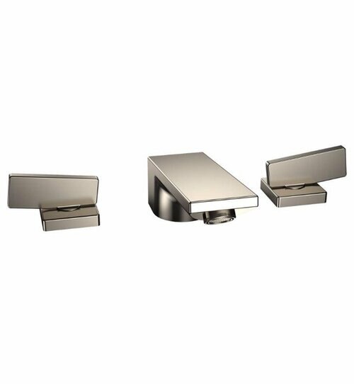 The modern, elegant design of this widespread faucet features solid brass construction and pop-up drain. ADA compliant.