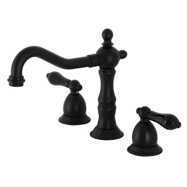 Crafted in commendations to English nobility, the exemplary design of this faucet manifests regality and elegance with its black porcelain handles. Ideal for more spacious bathrooms, widespread faucets are more spread apart and feature a 3-hole installation. The Duchess 8-inch widespread bathroom faucet with brass pop-up and its featured sturdy brass construction and premium oil rubbed bronze finish are guaranteed to glamorize your home's traditional ensemble for years to come. Glamorize your home today with the traditional elegance of this faucet. A matching finish drain is also included.